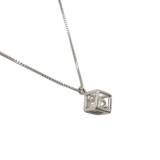 プラチナの線で作った立方体の中に持っていたダイヤを入れたペンダント