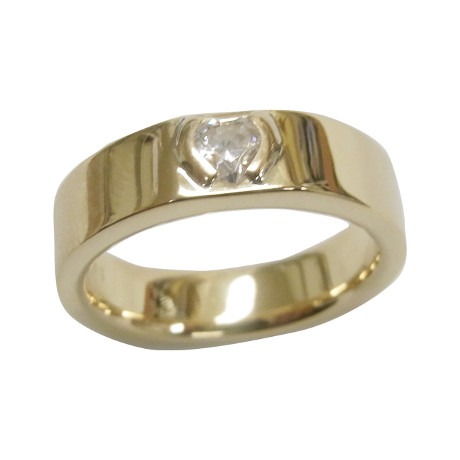 持っていたハートシェイプのダイヤを使って幅広リングに埋め込んだシンプルデザインへ