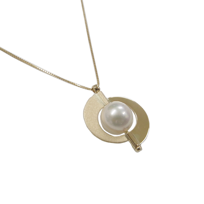 形見にもらったタイピンのパールを自分で使えるようにおしゃれなデザインに作り替えたプラチナペンダント