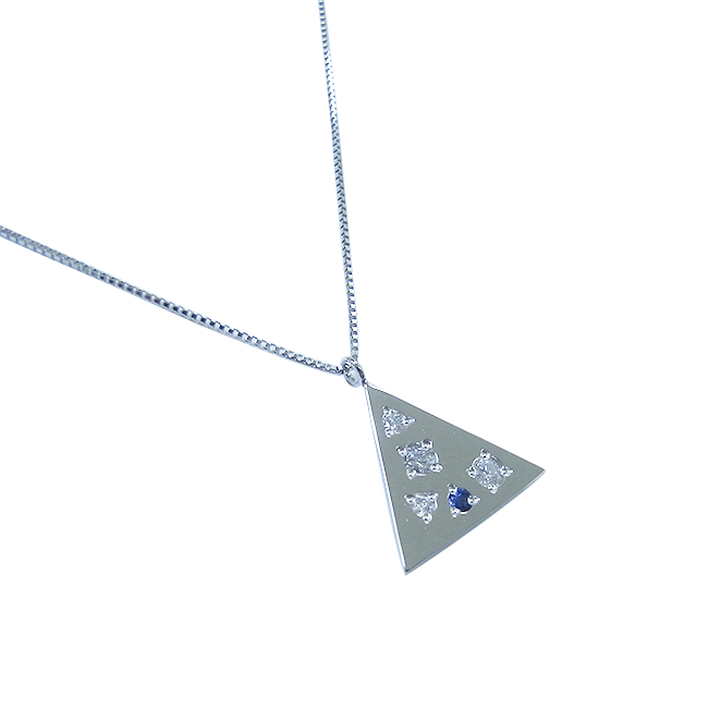 お持ちのペンダントチェーンの途中にステーションネックレスのような留め方でダイヤを入れる加工したサファイアペンダント