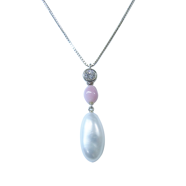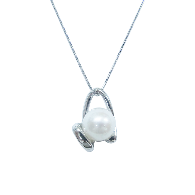 ハート型の金具が入っていた部分を淡水パールに置き換えたホワイトゴールドペンダントへ