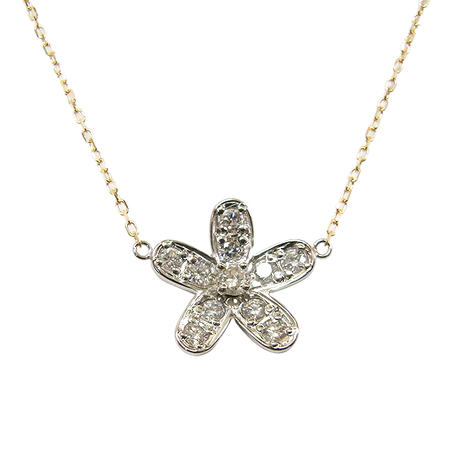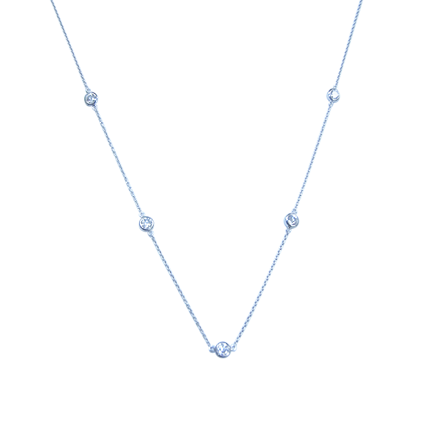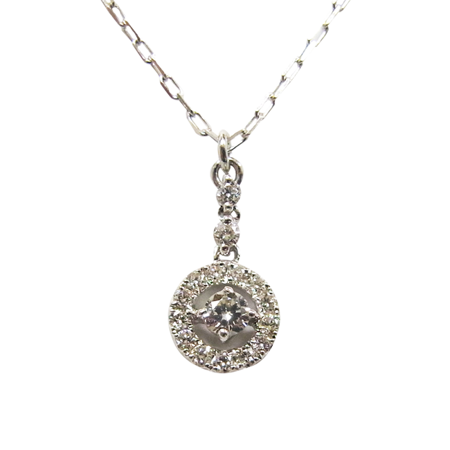 地金として売ったときに付いていたダイヤをセンターストーンに使った全長43cmのプラチナステーションネックレス