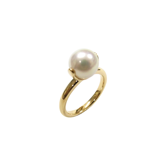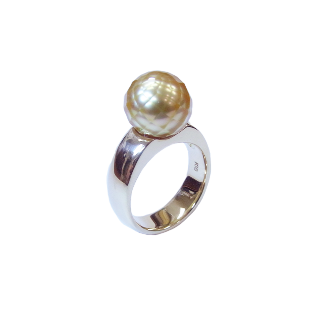 以前作ったペンダント(オーダーメイドNo.104)のパールを利用してしっかりとボリュームのあるイエローゴールドリングへ