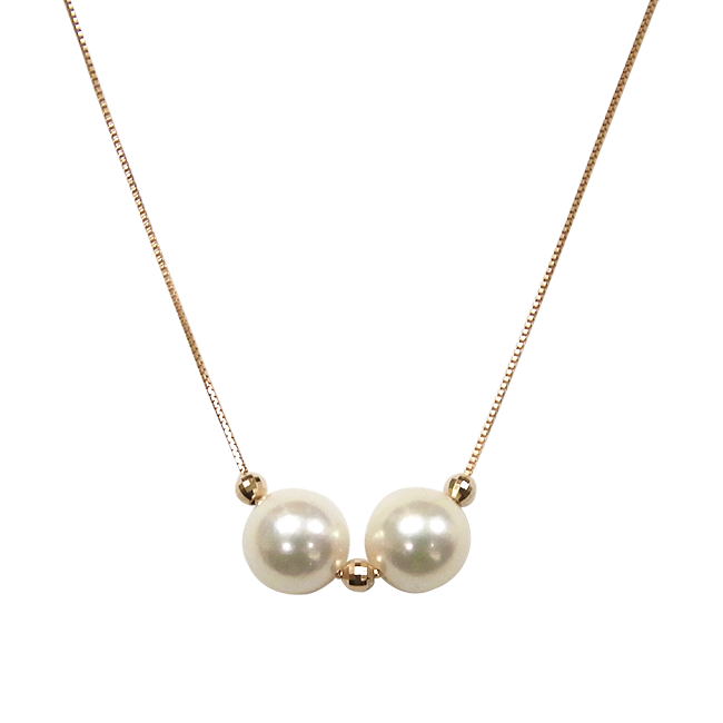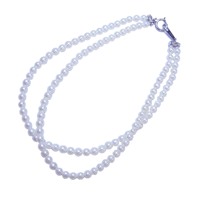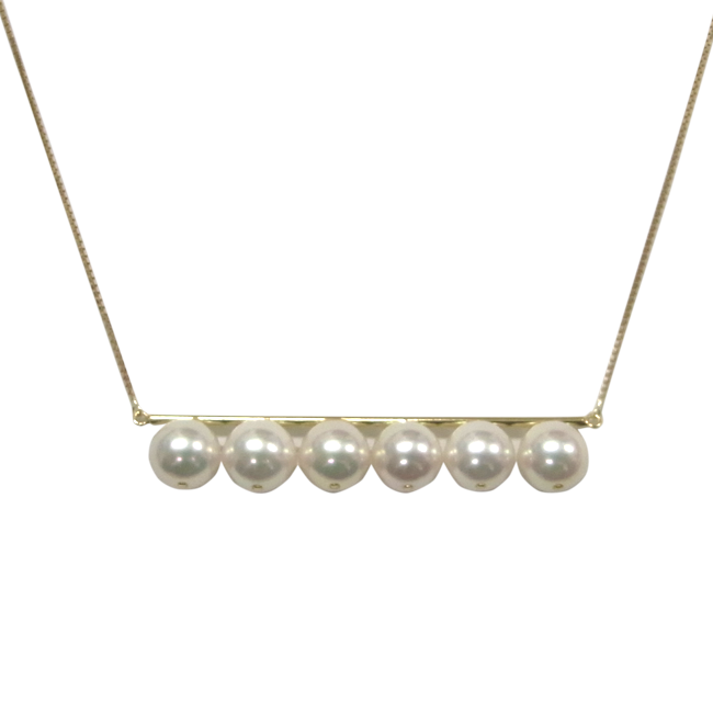 お客様が持っていたパールを直線的に並べてペンダントへ