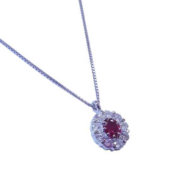 地金を売る時に残ったルビーを使ってダイヤ取り巻きのプラチナペンダントペンダントへ