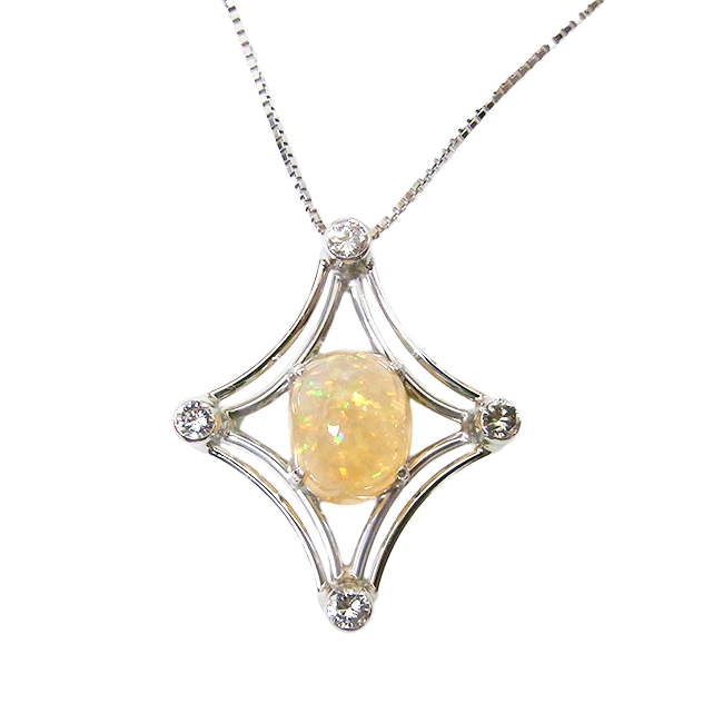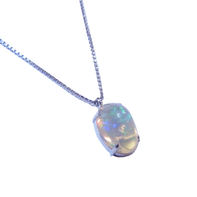 地金として売る時に残ったオパールをシンプルな4本爪のプラチナペンダントへ