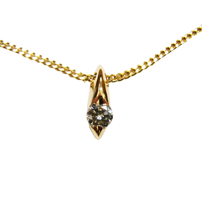 リングから外したペアシェイプカットのダイヤを使いペンダントトップへ
