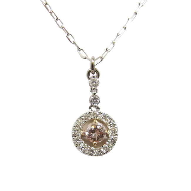 地金を売る時に残ったピンクダイヤを利用してダイヤ取り巻きのプラチナペンダントへ
