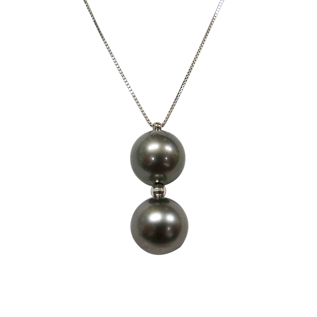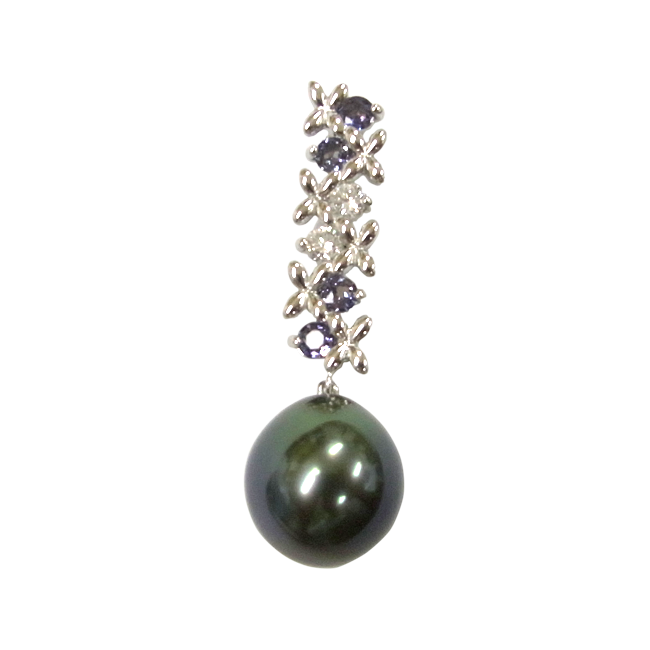 元々のペンダントトップの下に黒チョウパールを揺れるように取り付けました