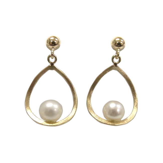 パールネックレスの余り玉を使って作ったイエローゴールドピアス