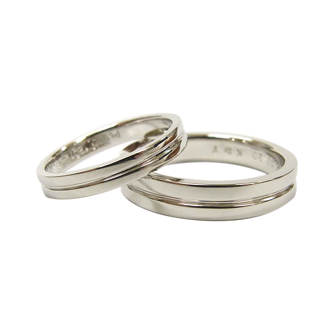 お二人同じデザインでリング幅やダイヤを入れて違いを出したプラチナマリッジリング