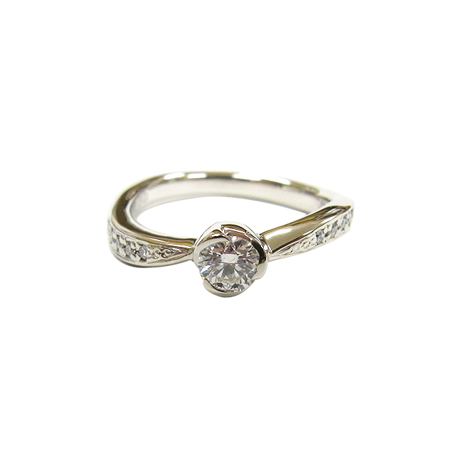 シンプルながら、腕のひねり・角度で個性を出したエンゲージリング