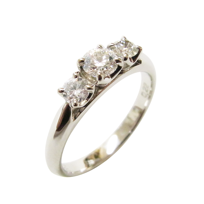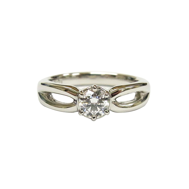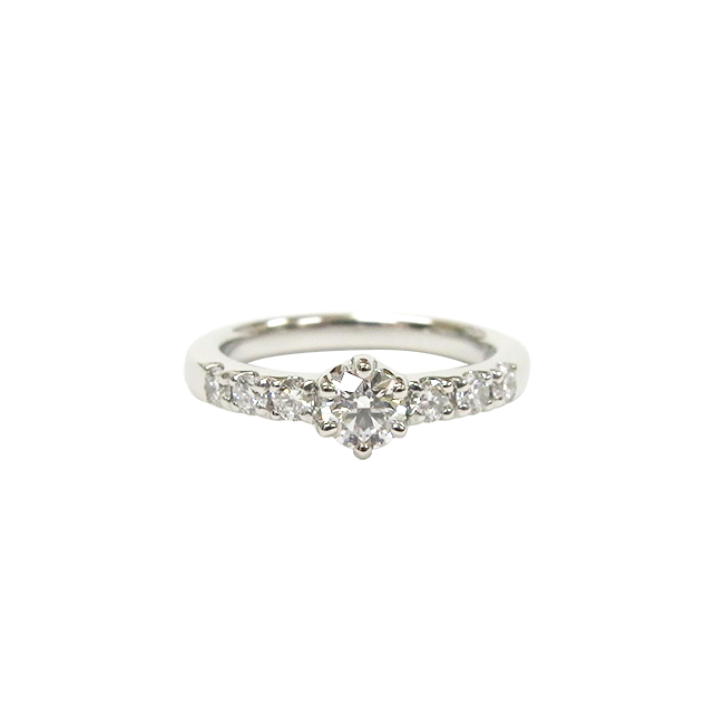 サイドの石留めを爪留めにすることで、ダイヤそのもののボリュームを出したエンゲージリング