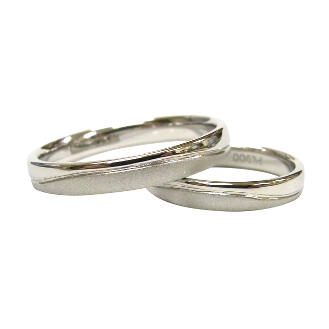 リングに入ったラインを境に光沢とつや消しのコンビネーションにしたマリッジリング