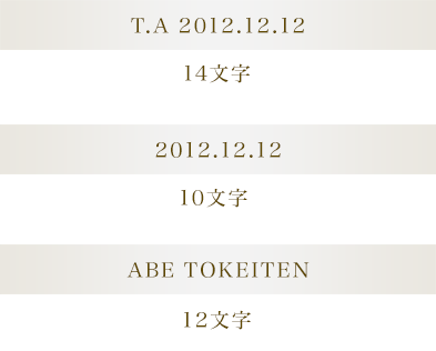 ※刻印はリング外周に、ローマ字・数字で最大15文字(点、スペースも含む)まで